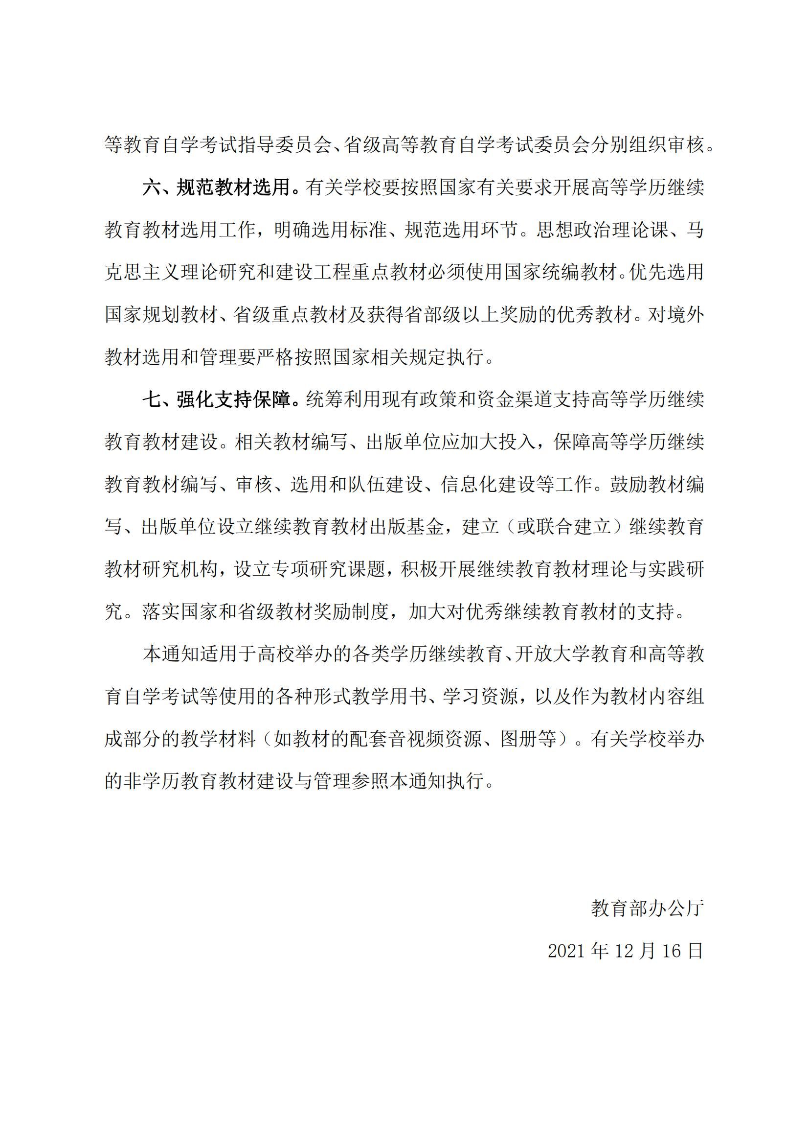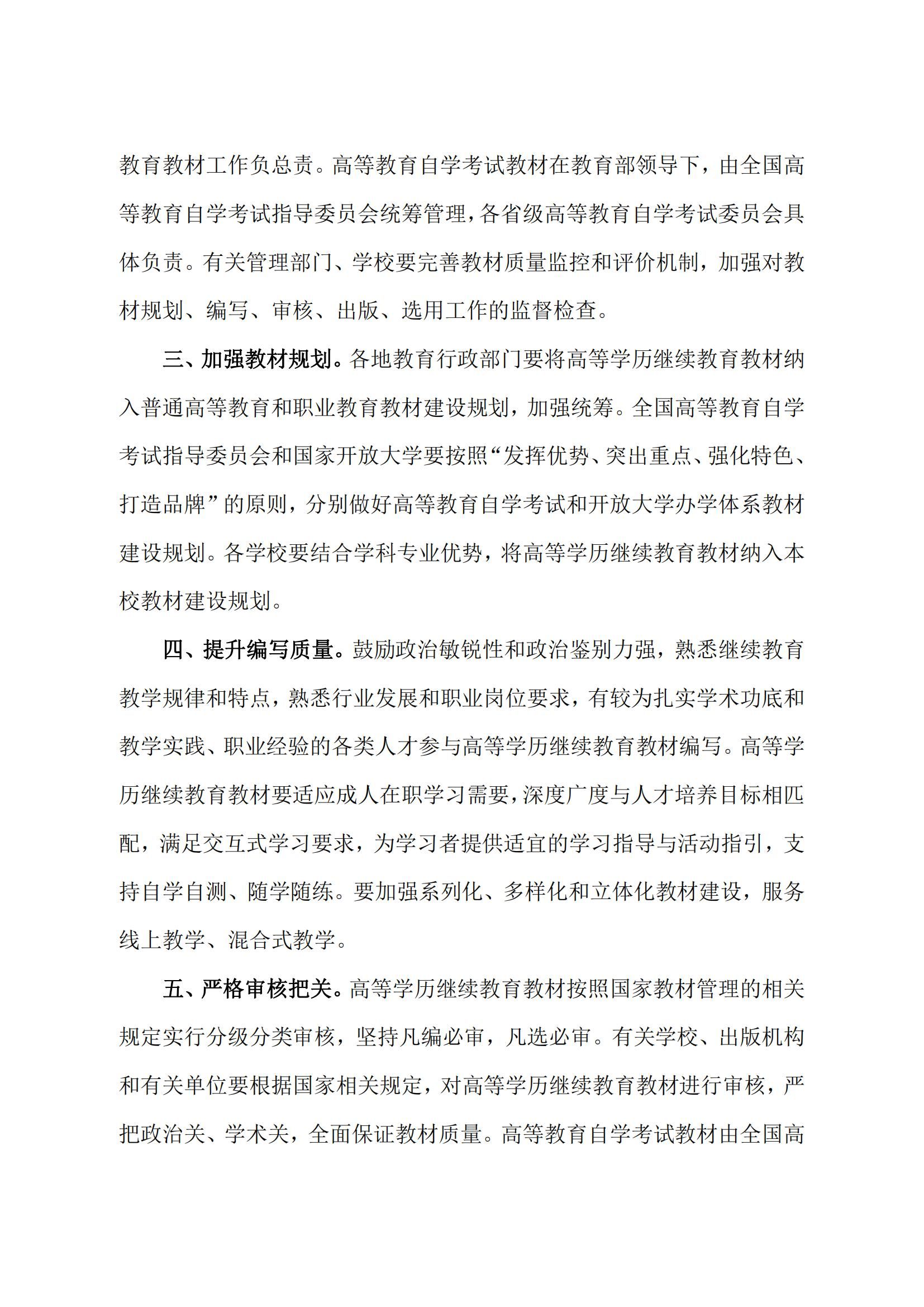 教育部办公厅关于加强高等学历继续教育教材建设与管理的通知