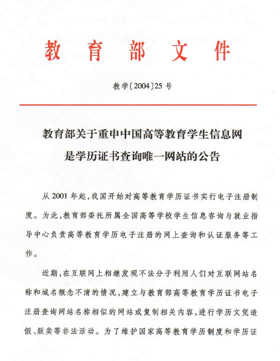 教育部关于重申学历证书查询唯一网站的公告