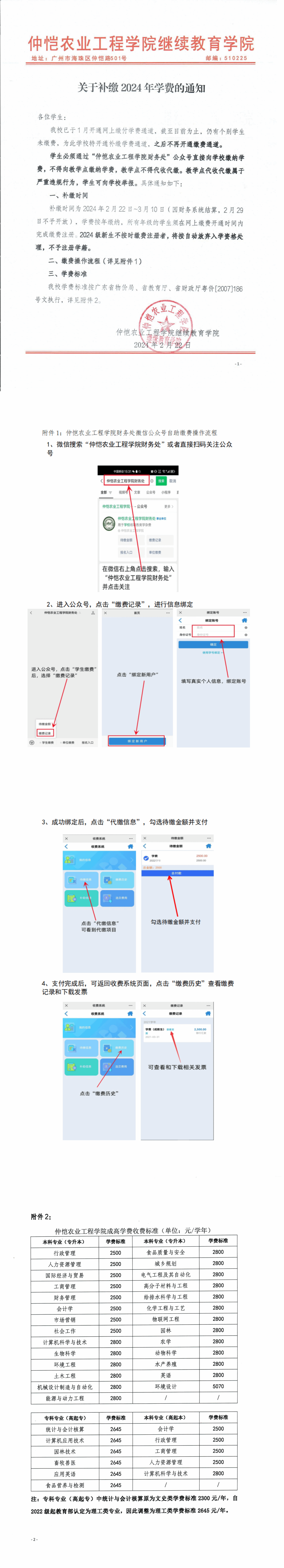 关于补缴2024年学费的通知