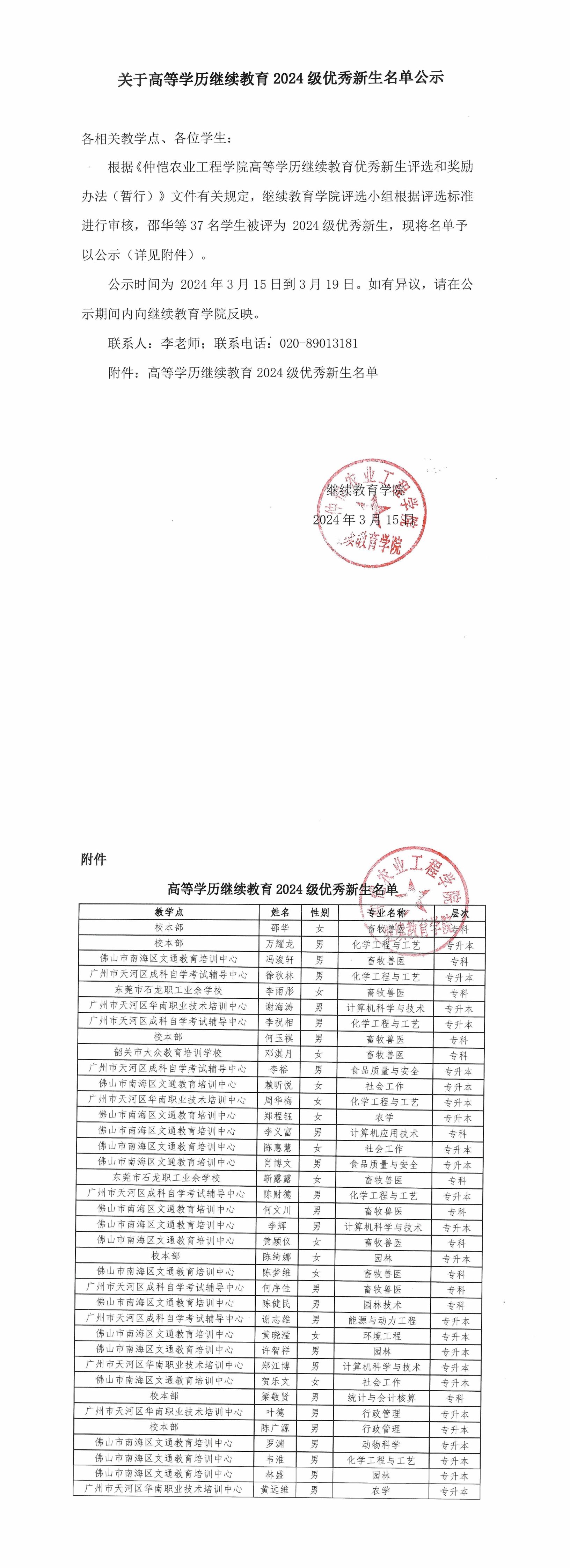 关于高等学历继续教育2024级优秀新生名单公示