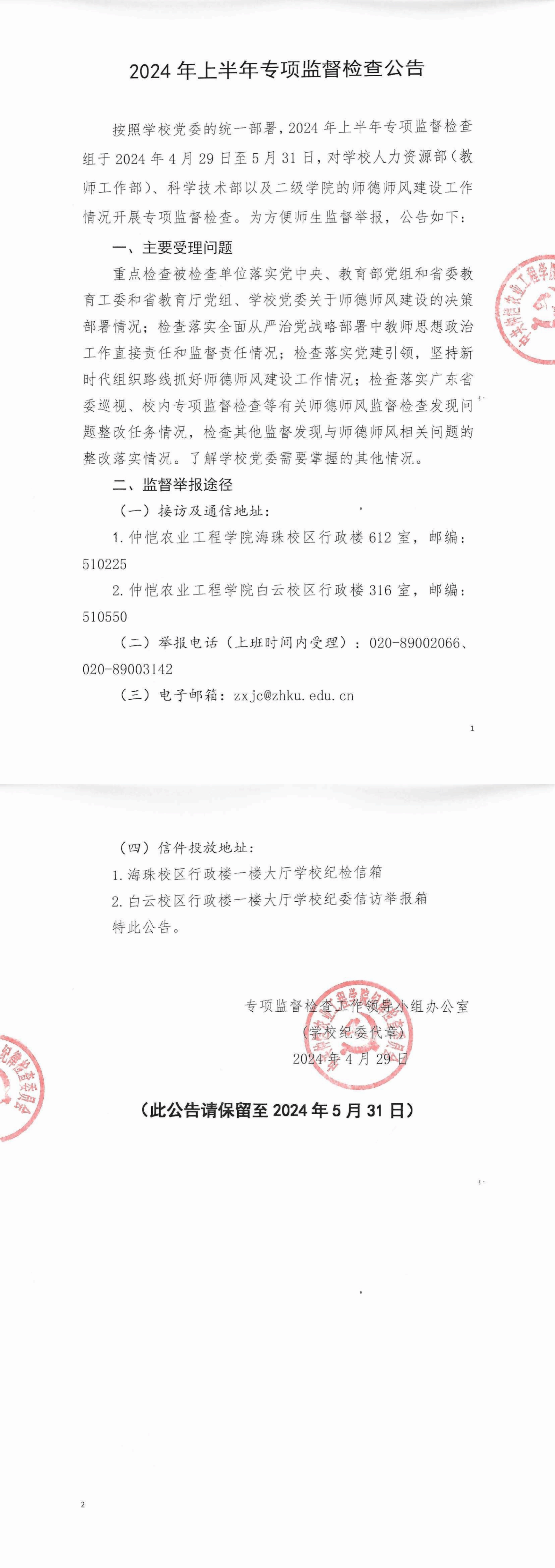 2024年上半年专项监督检查公告