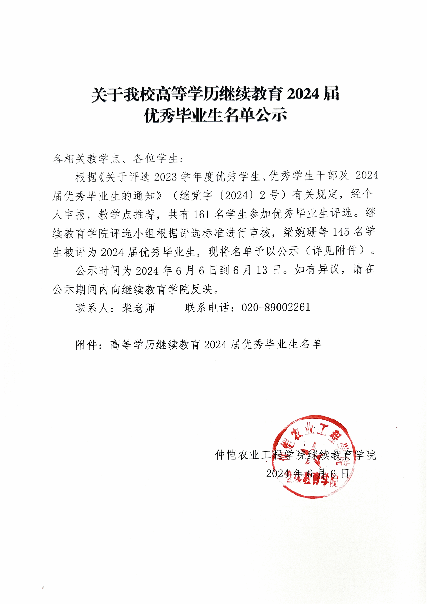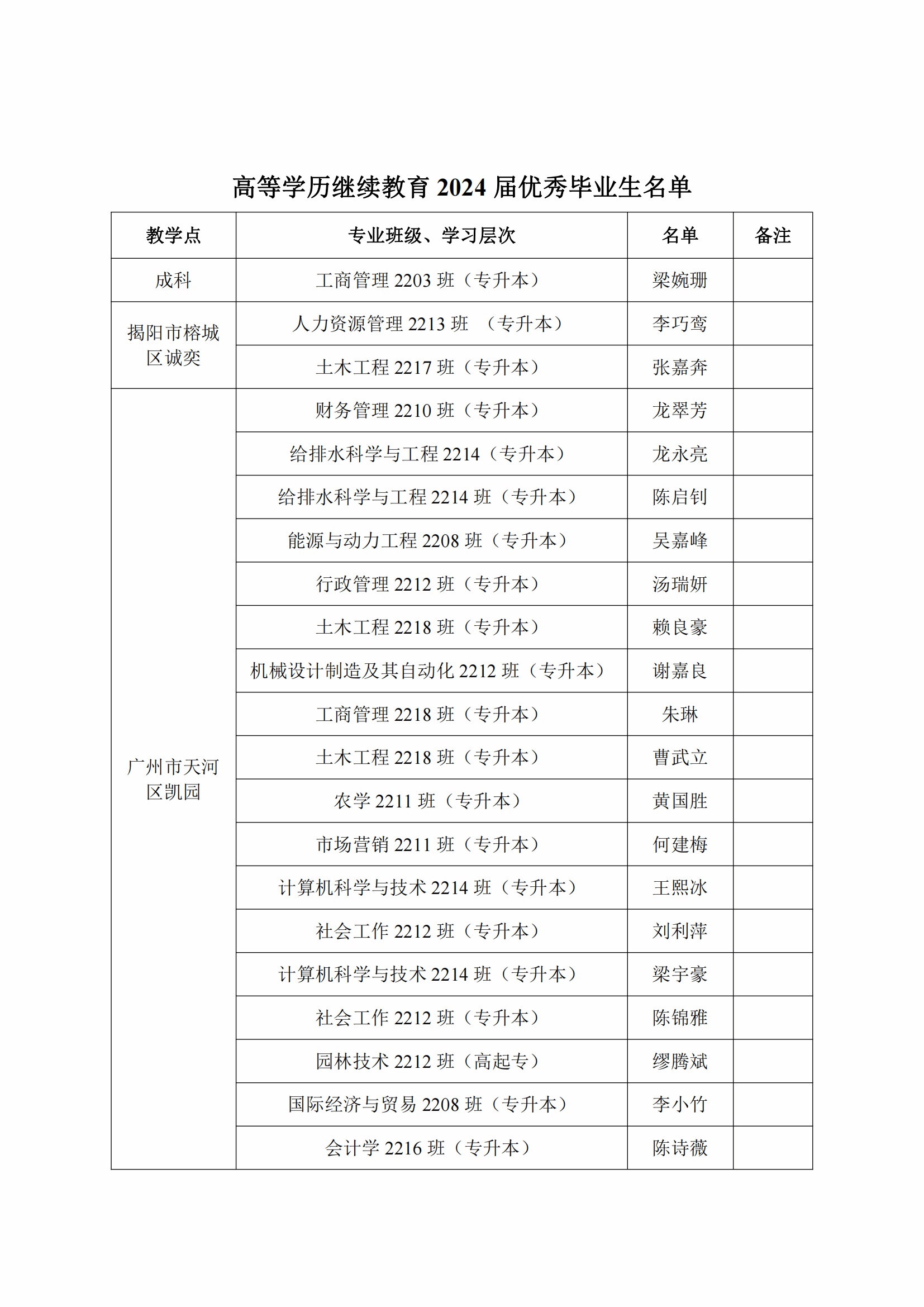 关于我校高等学历继续教育2024届 优秀毕业生名单公示