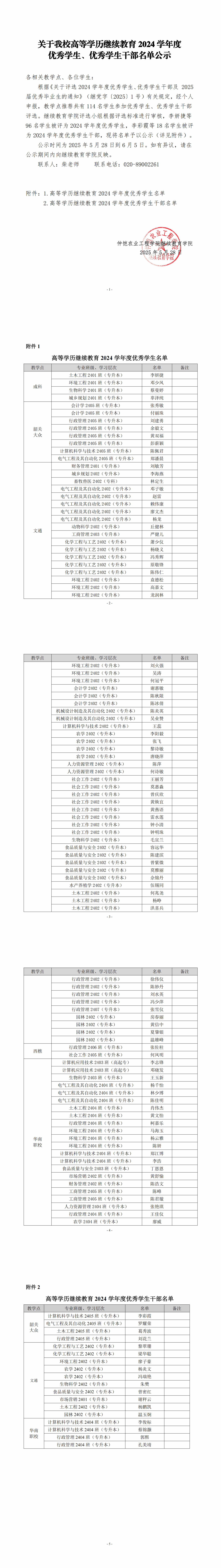 2024年度优秀学生及学生干部公示