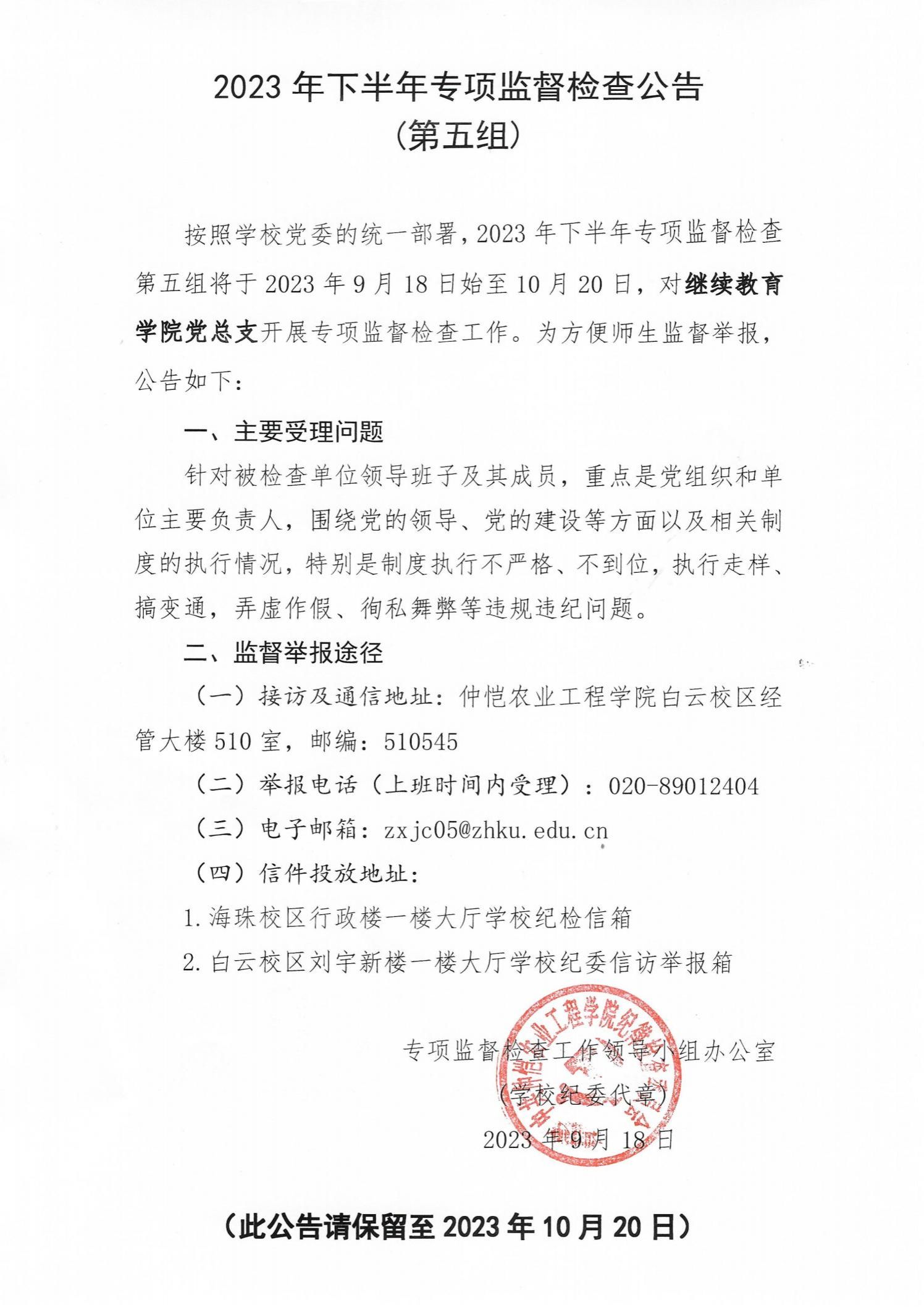 2023年下半年专项监督检查公告(第五组)