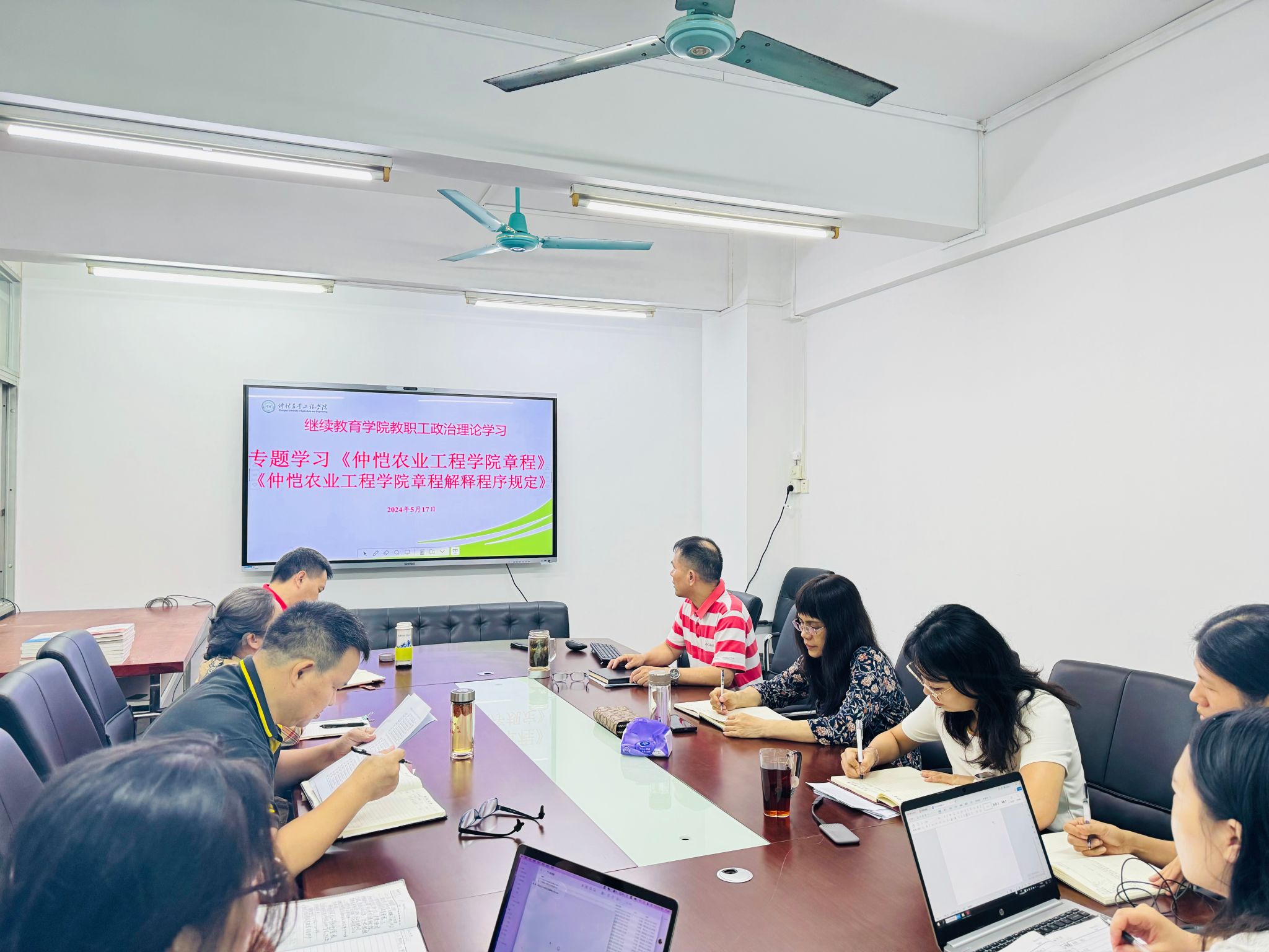 5月17日下午,yl88858永利集团召开教职工政治理论学习会议,专题学习《仲恺农业工程学院章程》(以下简称《章程》)和《仲恺农业工程学院章程解释程序规定》,全体教职工参加会议,总支书记陈绍华主持会议。