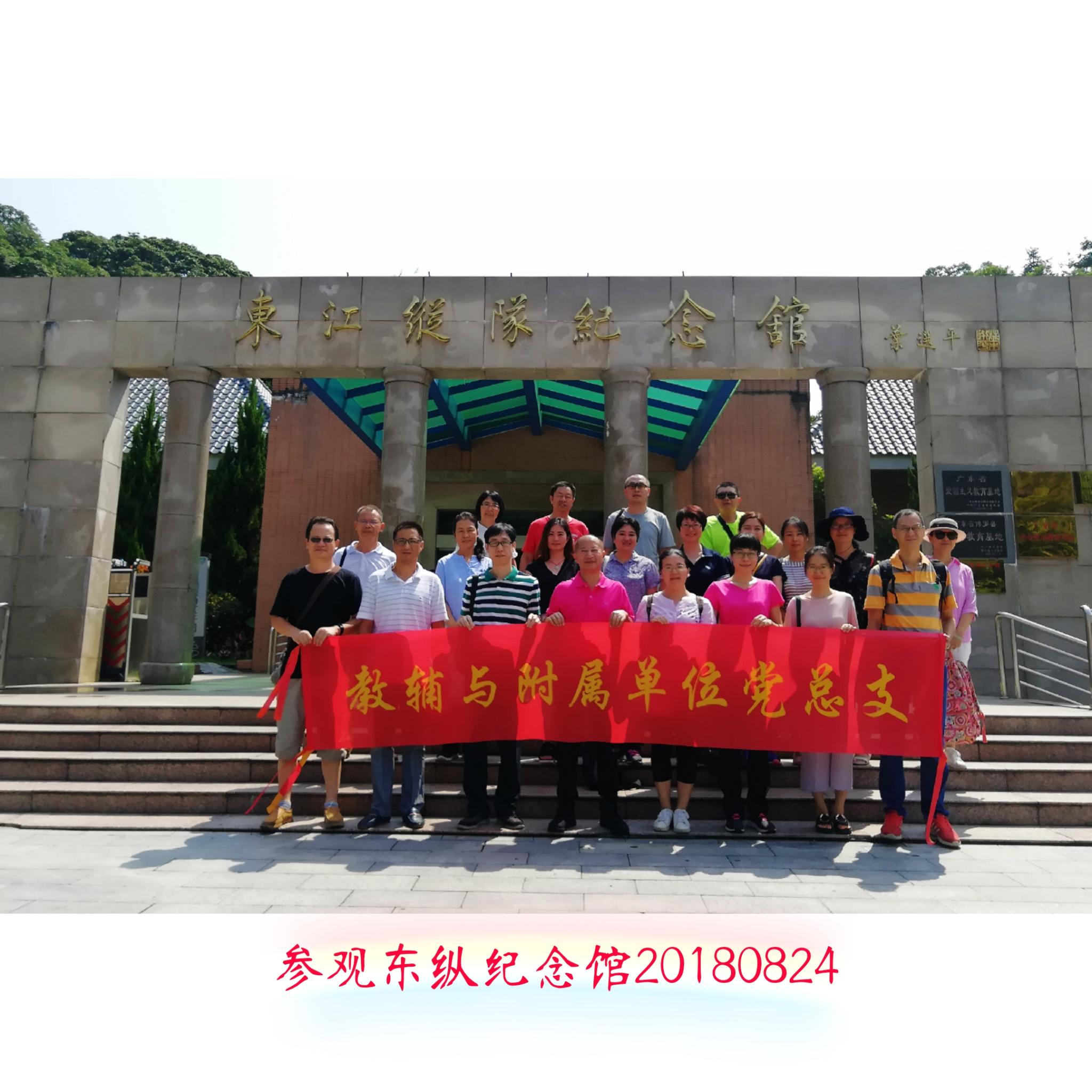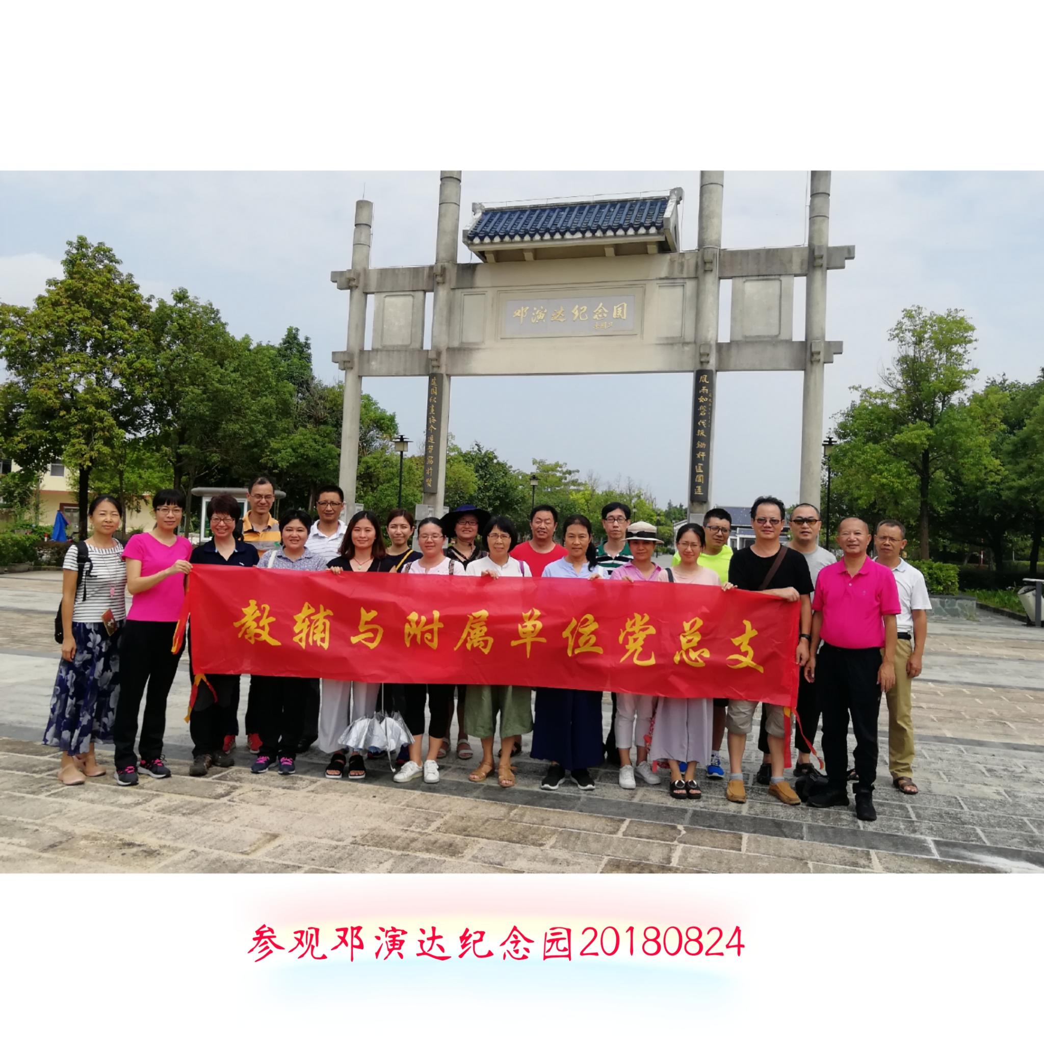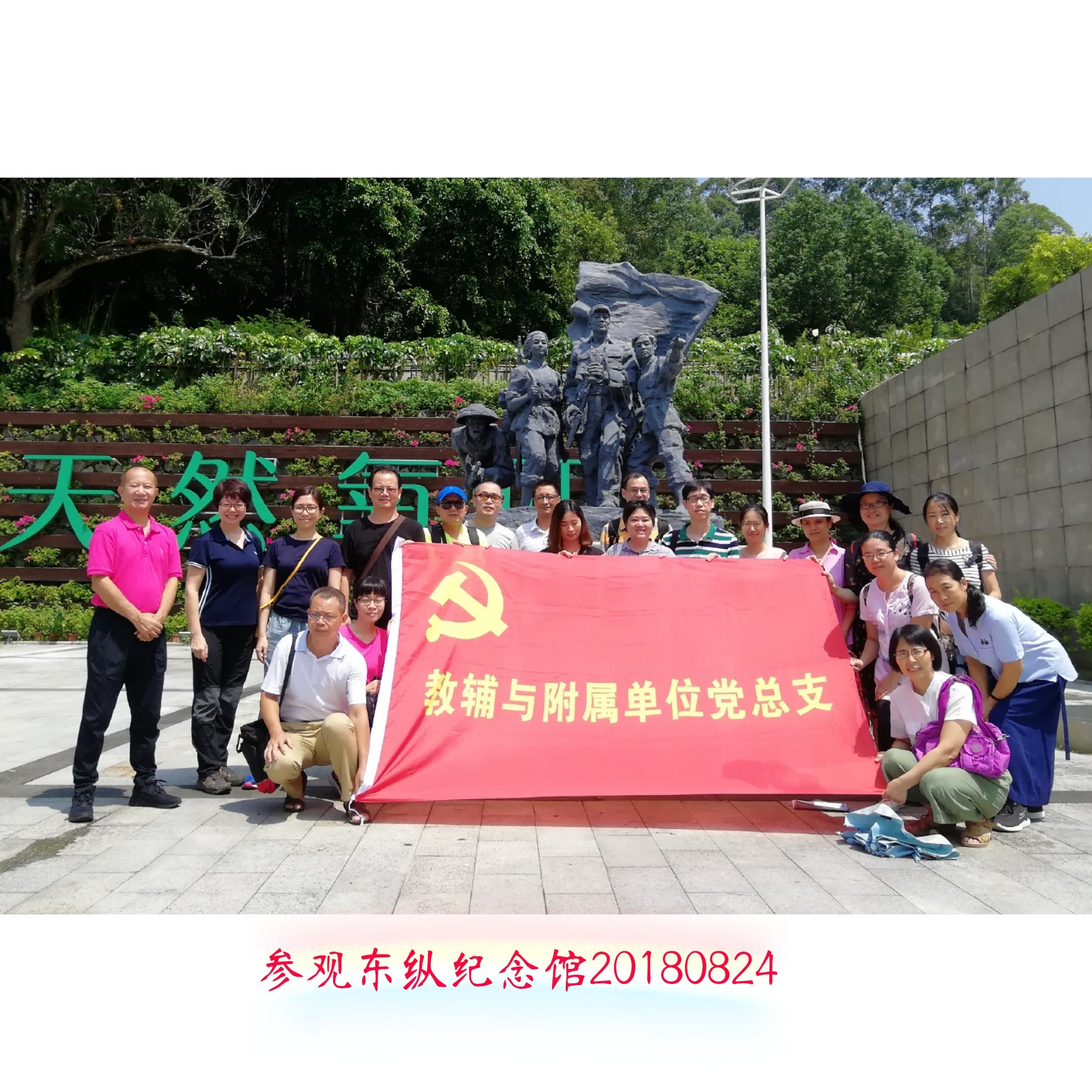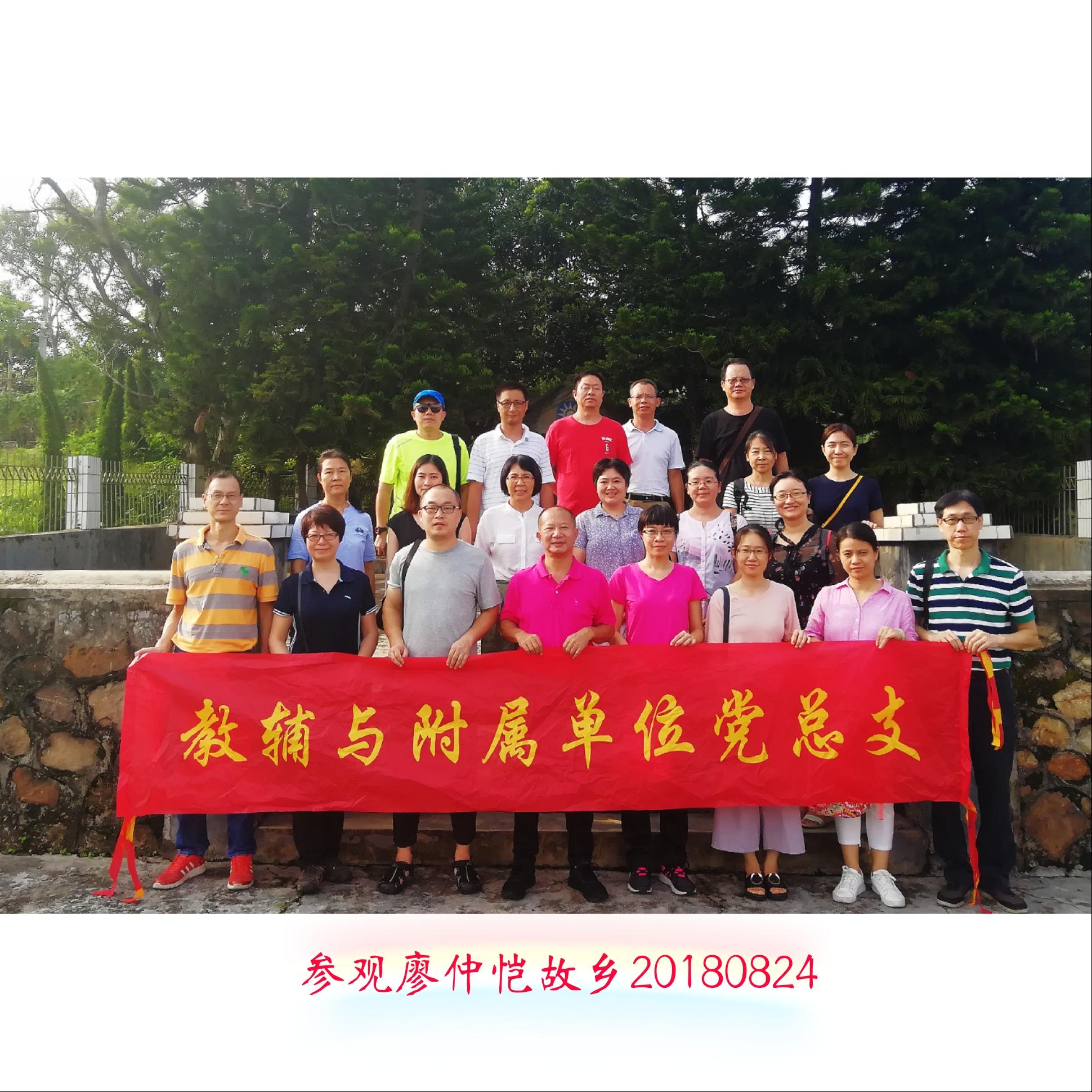 为加强党员党性教育,提升基层党建工作活力,2018年8月24日,教辅与附属单位党总支组织所属8个党支部的党员到惠州进行党员教育主题活动。党员们先后参观了东江纵队纪念馆(博罗)、邓演达纪念园和廖仲恺先生故乡惠州市高新区陈江镇幸福村,并拜祭了廖仲恺先生的衣冠冢。