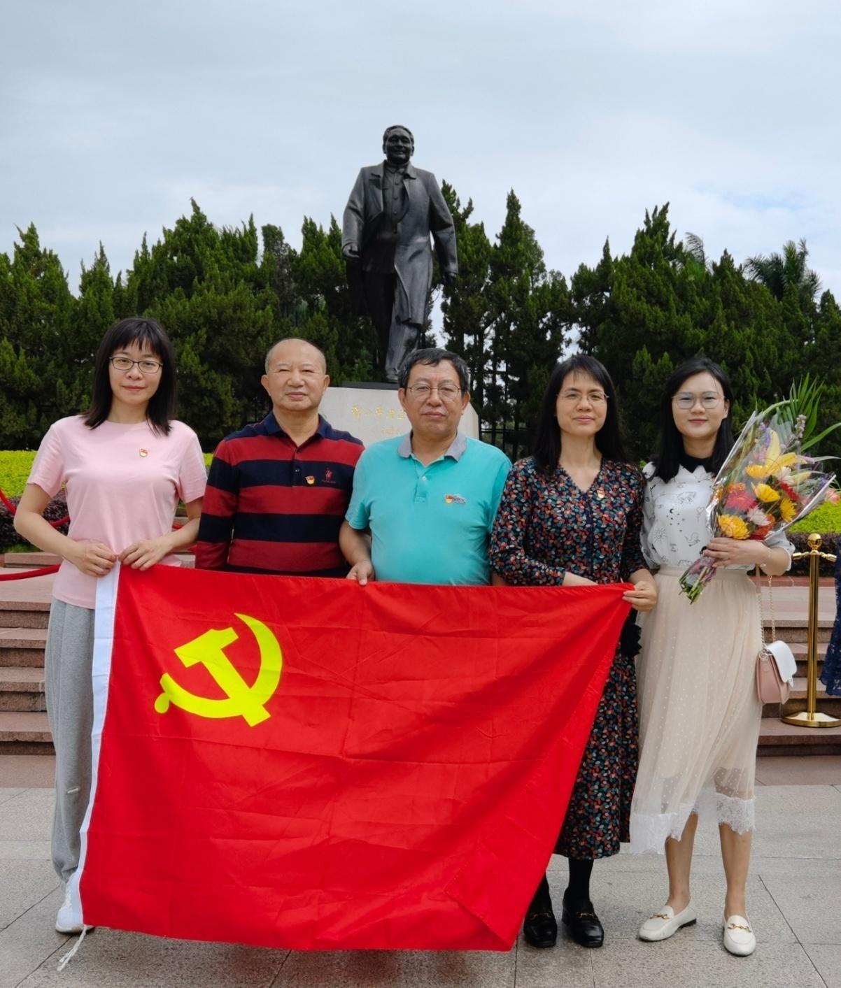为贯彻落实学校党委和机关党委关于党史学习教育的要求, 4月20日上午,yl88858永利集团党支部全体党员前往深圳莲花山公园,开展“敬献鲜花,缅怀伟人” 主题党日活动。深圳莲花山公园山顶广场上,在支部书记刘艾的带领下,全体党员瞻仰邓小平铜像,向邓小平铜像敬献鲜花,表达对邓小平同志的崇高敬意和深切缅怀。