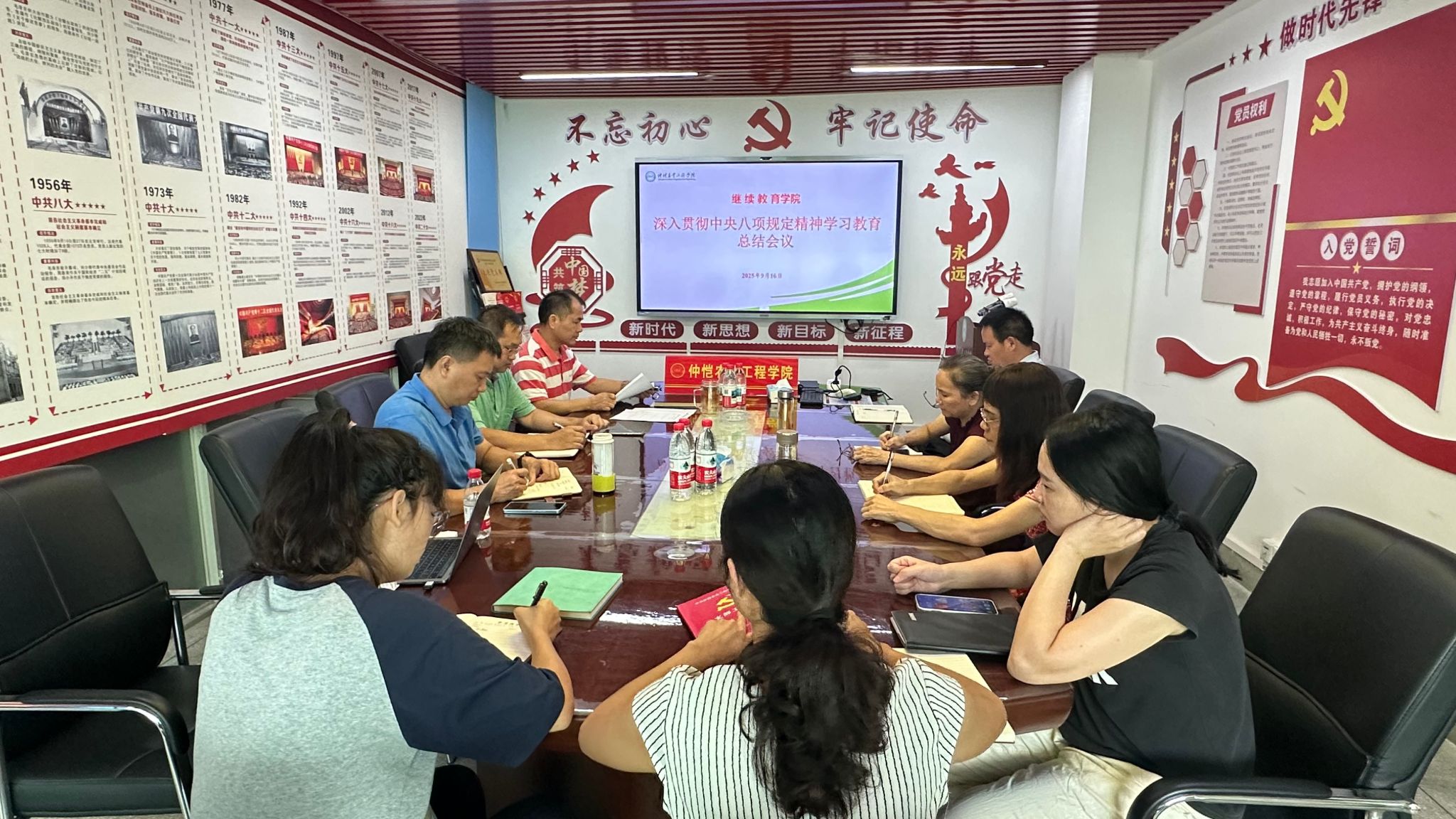 会议强调,全体党员干部要以学习教育为新起点,锲而不舍落实中央八项规定精神,将学习教育工作融入日常、抓在经常,以强化理论学习指导继续教育工作高质量发展实践,为学校高质量发展作出新的更大贡献。