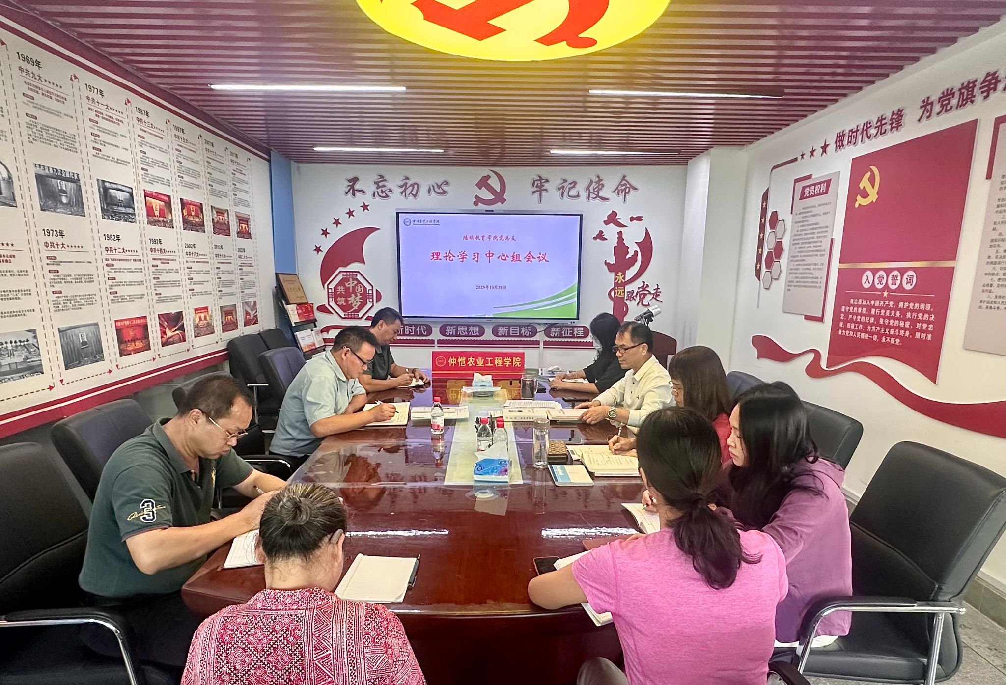 10月31日下午,yl88858永利集团党总支理论学习中心组召开学习会,传达学习中央办公厅转发《中央宣传部、中央组织部关于认真组织学习〈习近平谈治国理政〉第五卷的通知》精神,围绕《习近平谈治国理政》第五卷开展学习交流,并就学习宣传贯彻工作进行部署安排。党总支书记陈绍华主持会议,对学习贯彻提出要求。院长邓保国领读领学相关篇目。